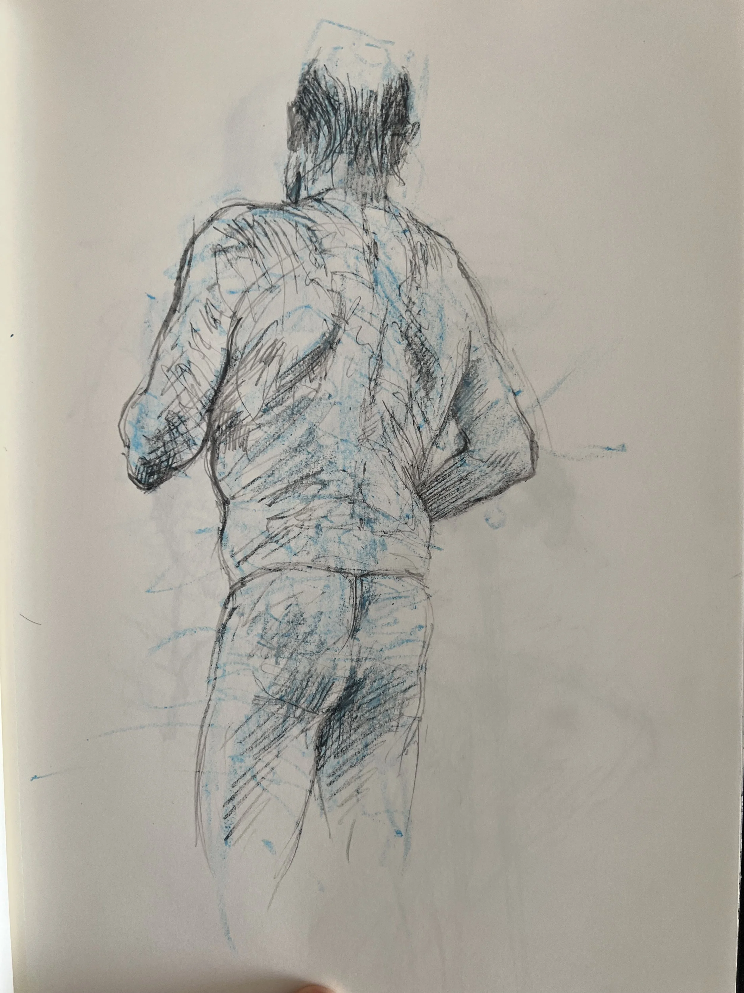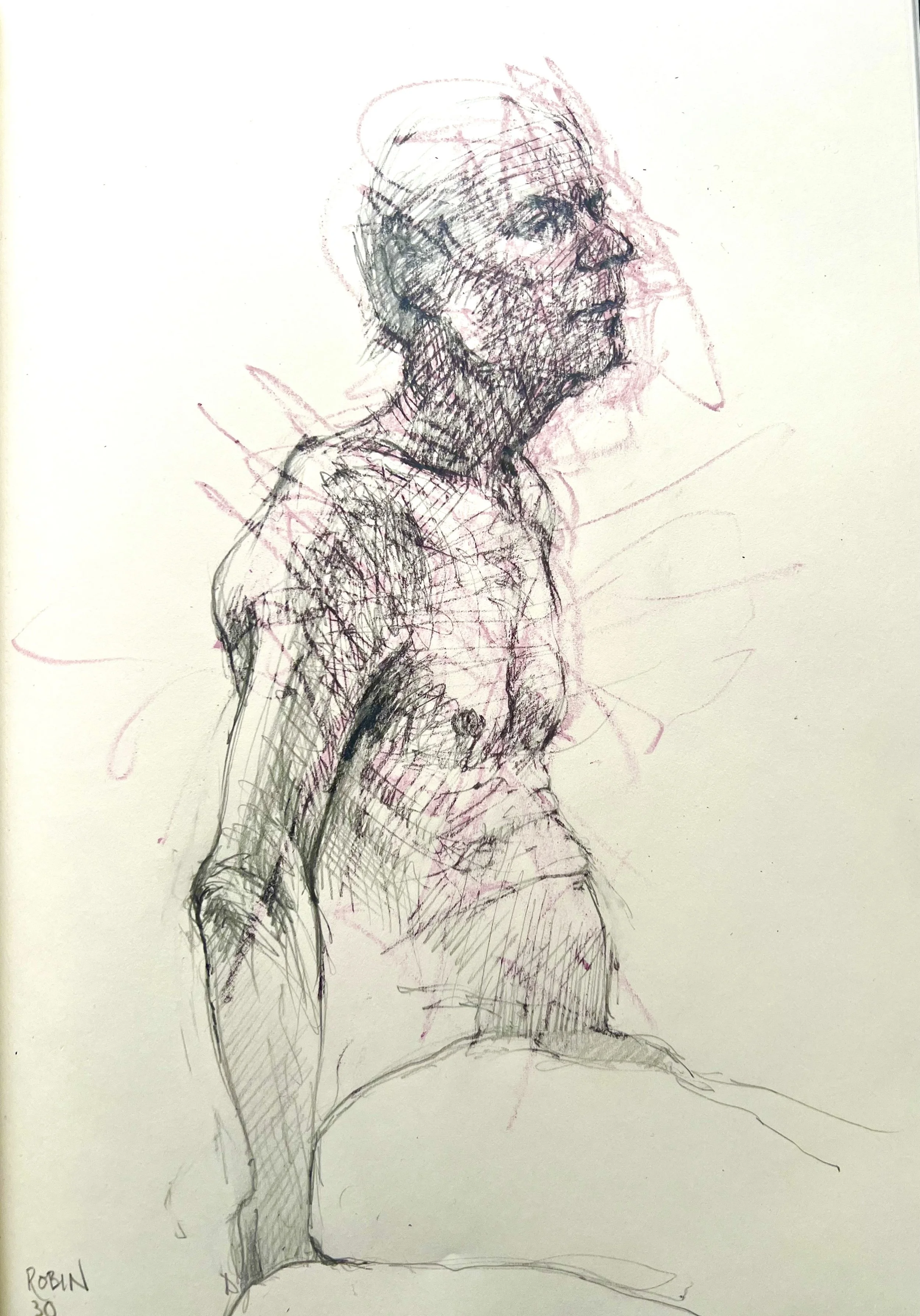 Robin's back. A4. graphite / oil pastel