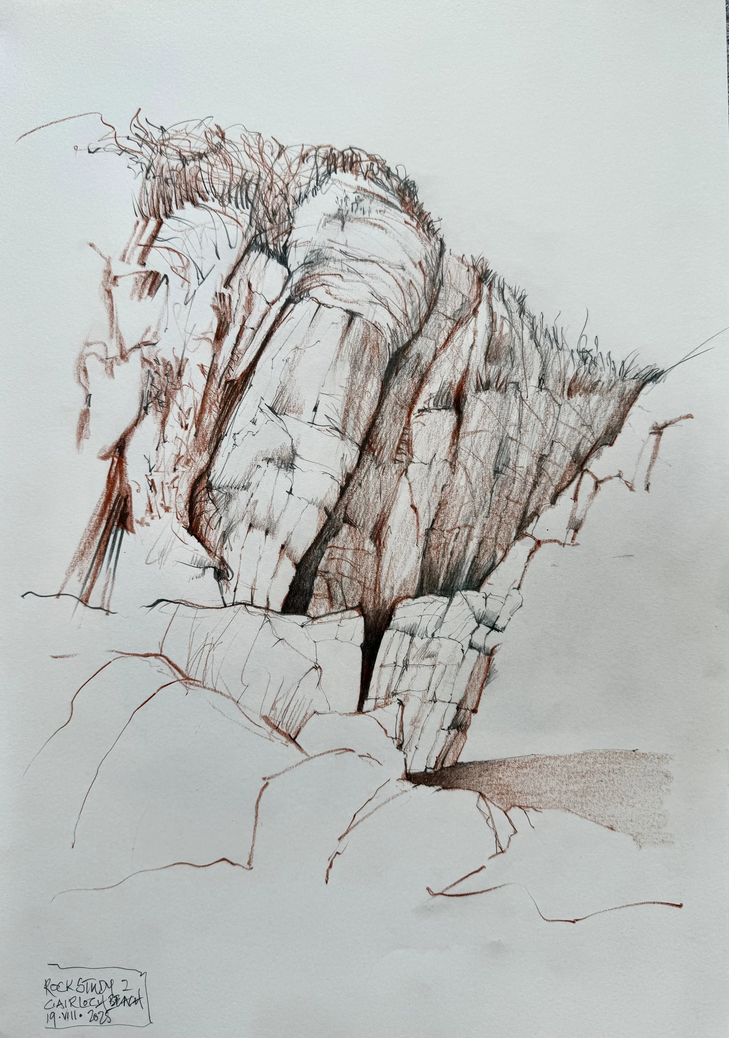 ROCK STUDY 3. Gairloch Beach Graphite and Oil Pencils. A3