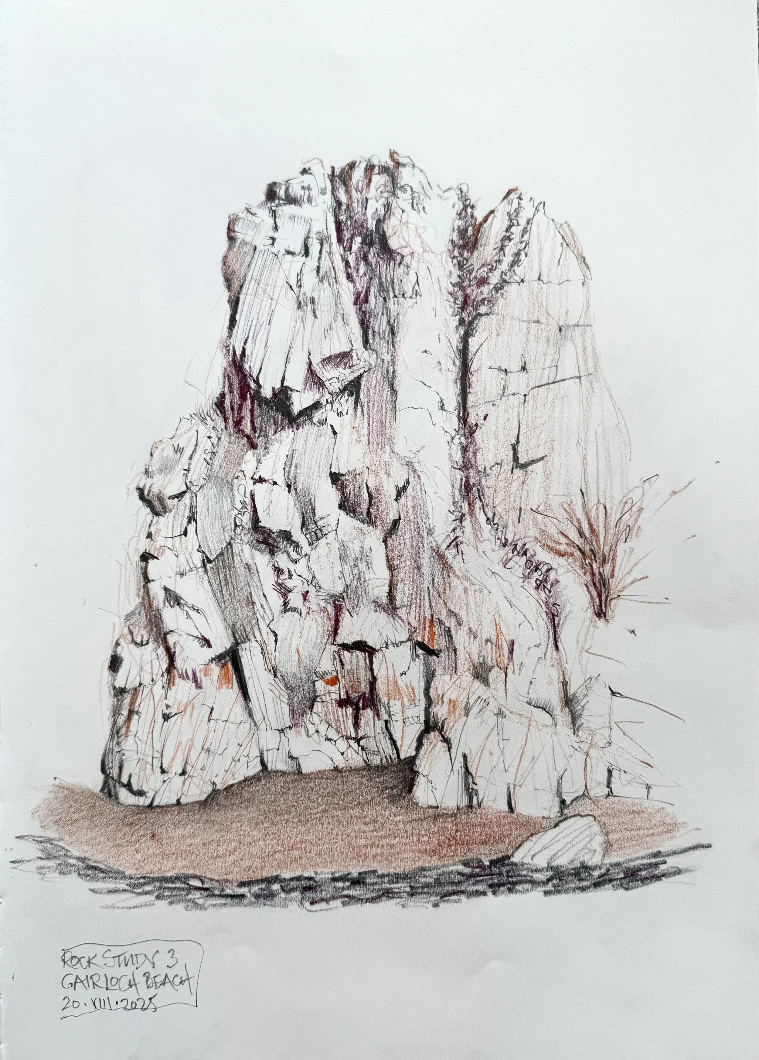 ROCK STUDY 1. Gairloch Beach. Graphite and Oil Pencils. A3