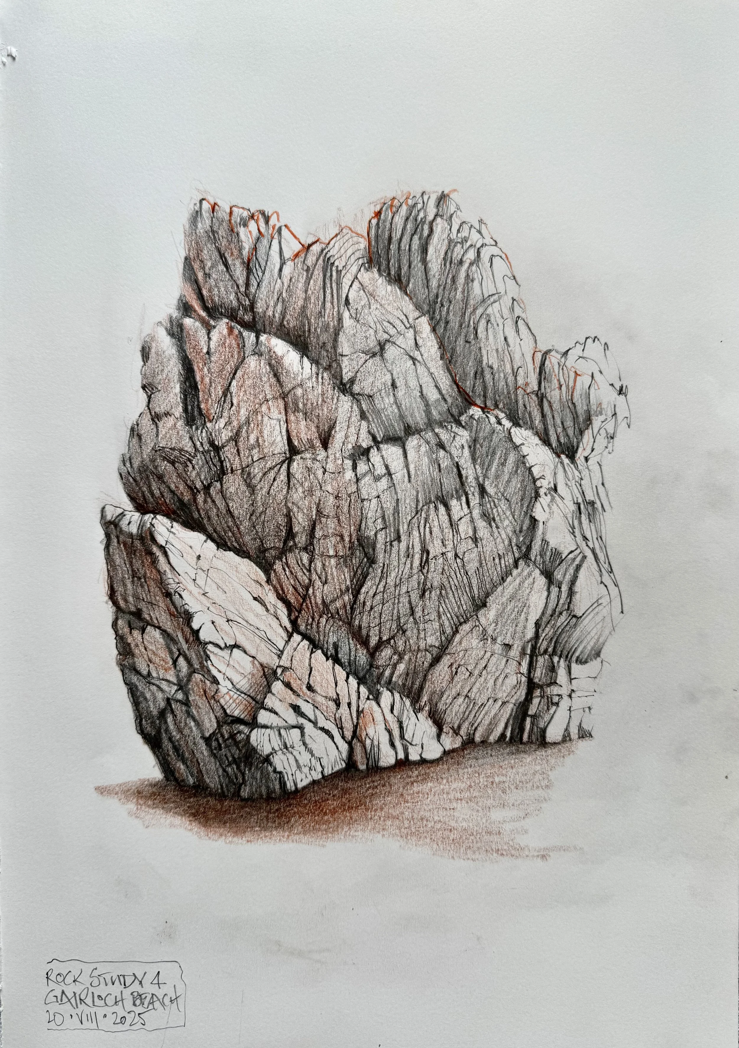 ROCK STUDY 4. Gairloch Beach Graphite and Oil Pencils. A3
