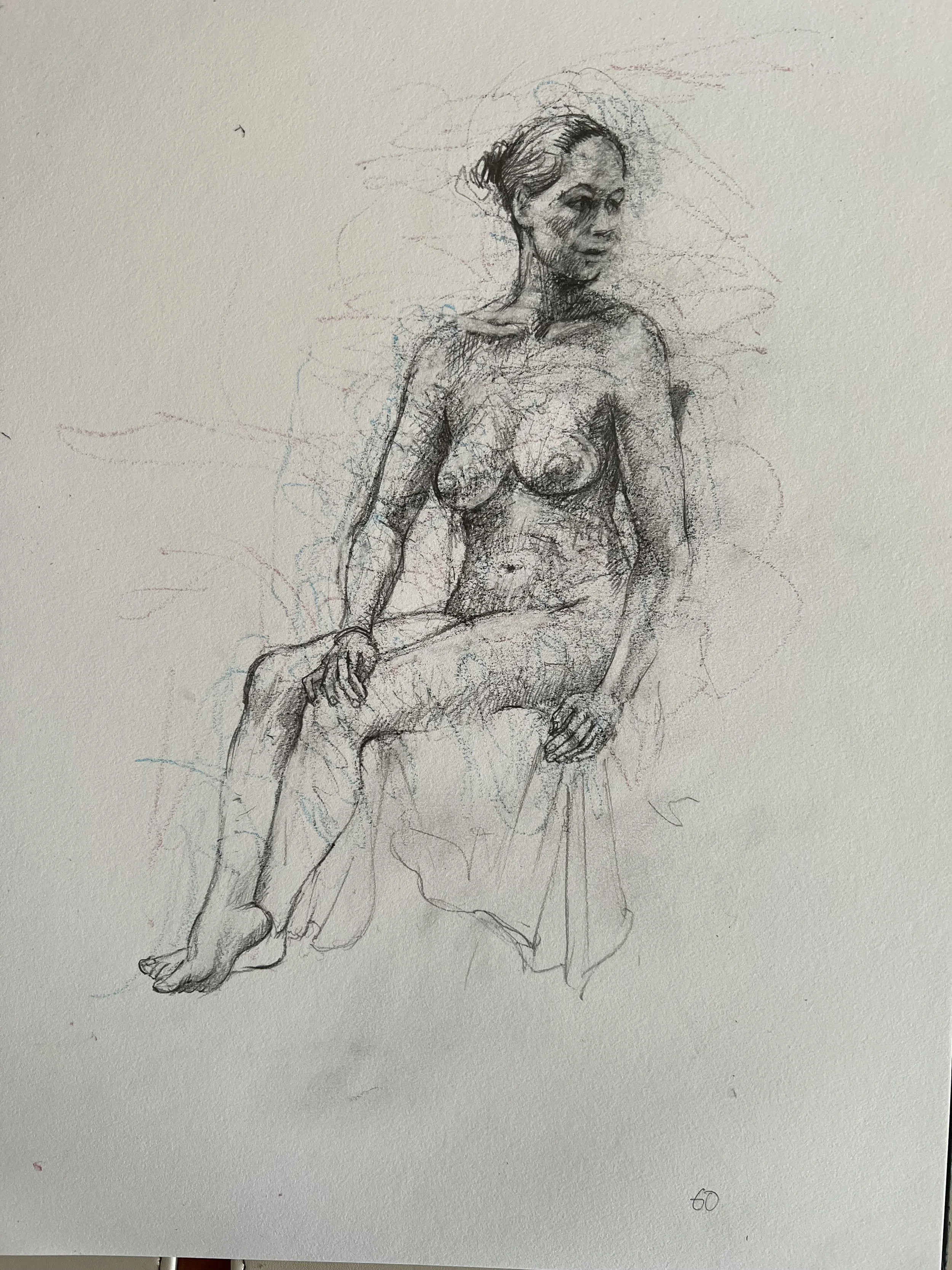 Clara seated. A3 graphite / oil pastel